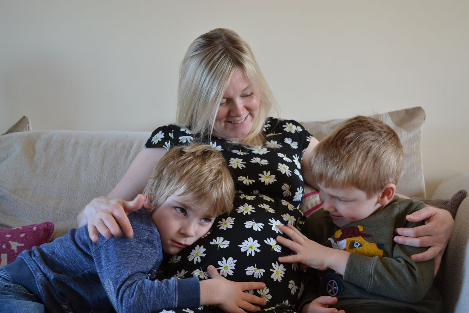 pregant-mum-and-boys-touching-baby-bump